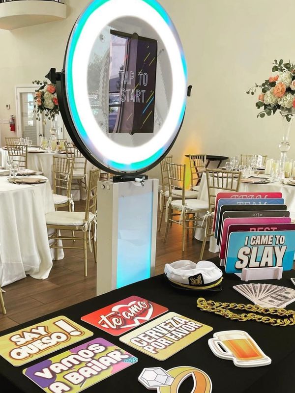 Our Roaming photo booth is a LED RIng-Style booth that our attendant will roam around your party with and guests can interact and take photos, GIFs, Boomerangs, and More anywhere in the room! All content can be sent instantly to your guests phone via text message, airdrop, QR Code, Social Media, and More!